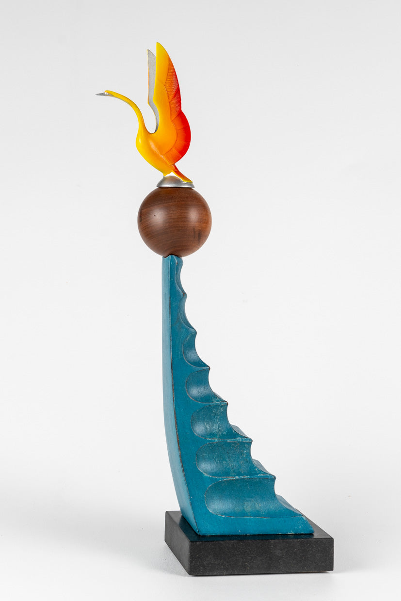A stylized fish hook made from mango wood with traditional lashing. This Hawaii Artists Collaboration piece was thoughtfully constructed by true masters in their trade. Mats Fogelvik is responsible for the carving, Beau Jack Key for the lashing, Alex Gupton for the pen and ink, Matthew D'Avella, and Colette Walton for framing.