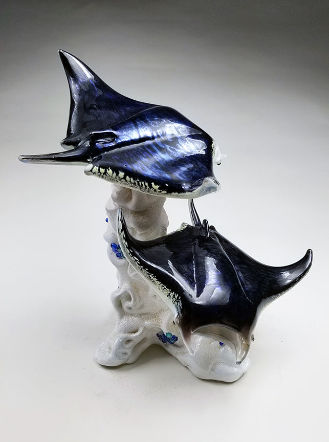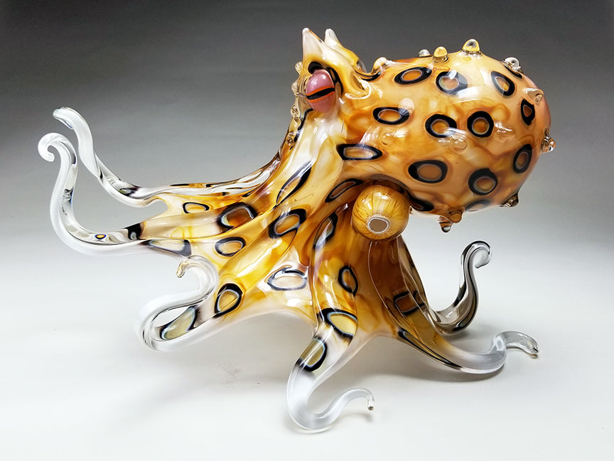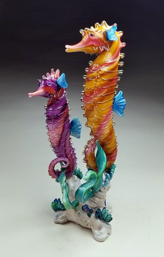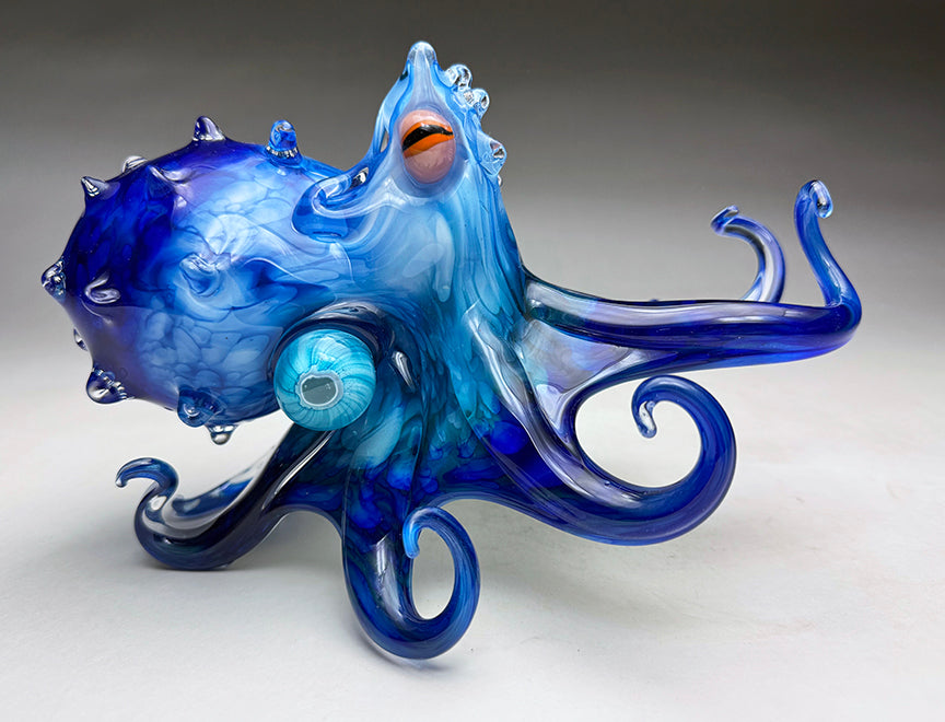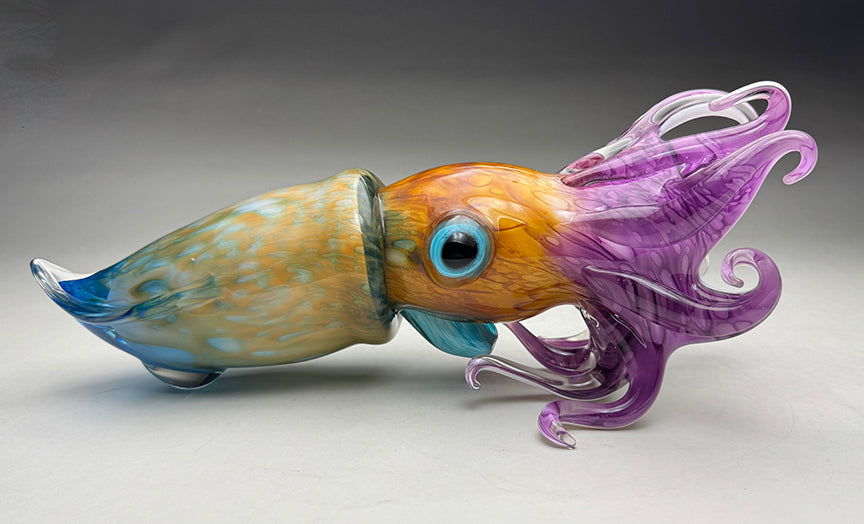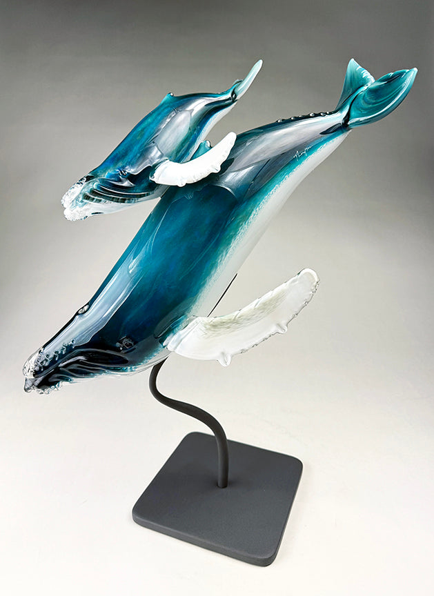 The Thompsons have a particular affinity for making sea creatures: gliding sea turtles, flamboyant octopuses, cresting whales and more. Jeff attributes this to the fact that glass shares a lot of qualities with water. “Glass flows like water. It reflects and refracts light like water. Our sea life sculptures glisten with a glassy wetness,” says Jeff.